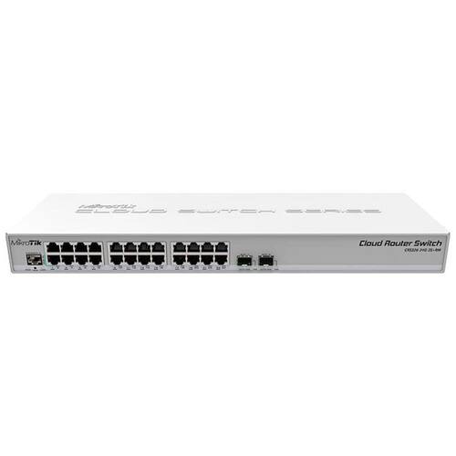 Características: - Processador de dois núcleos de 800 MHz. - 2 Interfaces SFP+ 10 Gbps. - 24 Interfaces Gigabit Ethernet 10/100/1000 Mbps. - Opção de boot para SwOS e RouterOS. - Suporte a 4000 VLANs simultâneas. - Tabela MAC com tamanho de 16K.
