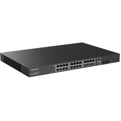 - ?Plug and Play? 24 portas Gigabit PoE e 2 portas RJ45 de 1G + 2 portas SFP de 1 G switch PoE não gerenciado, fácil configuração sem necessidade de instalação ou configuração de software. Não tem endereço IP ou interface web.