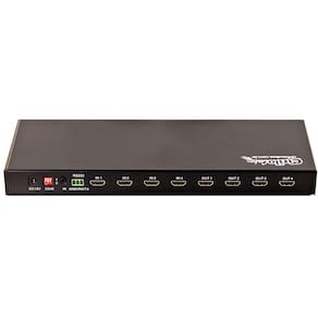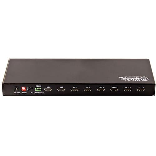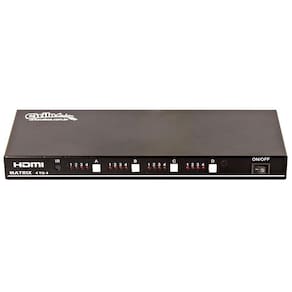 Switch/splitter matrix 4x4 hdmi 3d full hd com o switch/splitter matrix 4x4 hdmi 3d full hd você tem a possibilidade de conectar até 4 aparelhos hdmi saída e reproduzir para também 4 equipamentos hdmi entrada . O chaveamento pode ser feito via controle remoto ou manualmente na matriz. Pode ser ligado blue-ray, vídeo games, computadores, de tv a cabo, entre outros. Possibilita também a distribuição das 4 imagens simultâneas, em formato 4k, 2 k e 3d. Ideal para salas de reunião, vídeo conferências, escolas, centrais de controle, entre outros. Especificações: