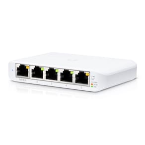 O Switch Ubiquiti UniFi Gen2 5P USW-Flex-Mini é um switch gerenciável de camada 2 com 5 portas Gigabit Ethernet RJ-45, sendo 1 porta de entrada PoE 802.3af. O USW Flex Mini pode ser alimentado através de PoE (na porta 1) ou através da fonte USB-C que acompanha o produto (*). O switch também pode ser monitorado e configurado de qualquer lugar através da interface intuitiva da aplicação UniFi Network, disponível via web ou app móvel.