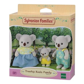 A Família dos Coalas Copa de Árvore está entre os novos amigos da Vila Sylvanian! É um conjunto de três figuras que inclui pai, mãe, e bebê. Você pode mover a cabeça e os membros das figuras do pai, da mãe e do bebê para colocá-los em diferentes poses.