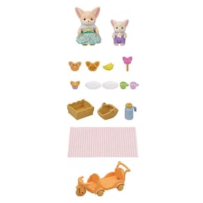 O Conjunto Piquenique Ensolarado - Irmã e Bebê Raposas-do-deserto – inclui membros da Família das Raposas-do-deserto, conhecidos por toda a parte por suas orelhas grandes e pontudas. Inclui a Menina e o Bebê Raposa-do-deserto, junto de um carrinho de passeio e equipamento para piquenique.Vem com pãezinhos em forma de Raposa-do-deserto, donuts, bombons e cupcakes.A cesta do carrinho de passeio pode ser removida para abrir espaço para que o bebê entre nele também.O conjunto inclui a Menina Raposa-do-deserto, Jasmine, seu irmão Bebê, Caleb, junto de um carrinho de passeio e equipamento para piquenique.Apresentando a Menina Raposa-do-deserto, Jasmine, e seu irmão Bebê, Caleb.O carrinho de passeio incluído pode ser anexado a carrinhos de passeio de outros conjuntos de gêmeos (vendidos separadamente).Combine com o Kit Inicial de Padaria (vendido separadamente) brincadeiras divertidas na padaria!Combine com os conjuntos Família das Raposas-do-deserto, Gêmeos Raposas-do-deserto e Trem Arco-Íris Flutuando na Nuvem (vendidos separadamente) para se divertir com todos os bonecos raposa-do-deserto.Contém: Menina Raposa-do-deserto, Bebê Raposa-do-deserto, Caixa (Mesa), Donuts, Pão, Pipoca, Banana, Doce, Pratos x2, Xícara (verde), Xícara (roxa), Cesta, Jarra, Jarra (Tampa), Lençol de PiqueniqueEspecificaçõesFabricante: EpochRef.: 5698Cód. Barras: 5054131056981Não recomendado para crianças menores de anos.Dimensões da embalagem (AxLxC): 15 x 20 x 6 cmPeso: 150gGarantia do vendedor: 7 diasGarantia do fabricante: 3 meses