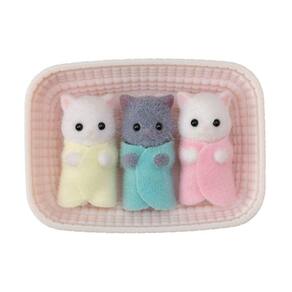 Os Trigêmeos Gatos Persas têm pelos macios e cabem juntos dormindo no berço incluso. A gatinha com roupa amarela é travessa e gosta de puxar plantas e fitas do vestido da irmã. O gatinho cinza com roupa verde adora o cheiro de menta e o som das folhas se movendo ao vento. A gatinha com a roupa rosa cresce mais rápido dos três e foi a primeira a rolar enquanto dormia.