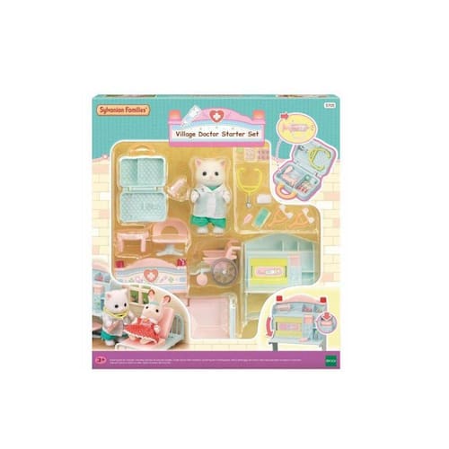 Sylvanian Families Village Doctor Starter Set - Epoch 5705 O Village Doctor Starter Set apresenta tudo o que você precisa para fingir que está brincando de médico, incluindo figura com jaleco branco, máquina de check-up e outras ferramentas médicas.