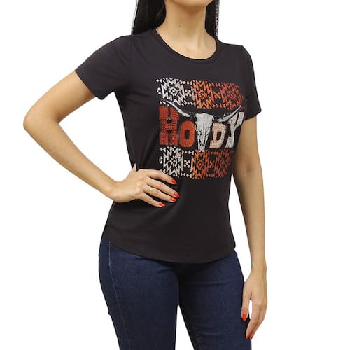 Destaque-se com a camiseta da marca Zoe Horse, uma peça que une estilo e conforto em perfeita harmonia. Feita com uma mistura suave de viscose e elastano, ela oferece um toque macio, caimento perfeito e excelente elasticidade, garantindo liberdade de movimentos e máximo conforto. O grande diferencial desta camiseta é sua estampa de inspiração country, composta por delicadas pedrinhas de strass que formam desenhos elegantes e cheios de brilho, conferindo um toque de sofisticação e originalidade ao look. Ideal para quem deseja compor produções modernas com uma pitada de charme rústico. Seja em eventos casuais ou momentos especiais, essa peça é perfeita para expressar seu estilo autêntico e sofisticado.