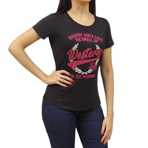 Destaque-se com a camiseta da marca Zoe Horse, uma peça que une estilo e conforto em perfeita harmonia. Feita com uma mistura suave de viscose e elastano, ela oferece um toque macio, caimento perfeito e excelente elasticidade, garantindo liberdade de movimentos e máximo conforto. O grande diferencial desta camiseta é sua estampa de inspiração country, composta por delicadas pedrinhas de strass que formam desenhos elegantes e cheios de brilho, conferindo um toque de sofisticação e originalidade ao look. Ideal para quem deseja compor produções modernas com uma pitada de charme rústico. Seja em eventos casuais ou momentos especiais, essa peça é perfeita para expressar seu estilo autêntico e sofisticado.