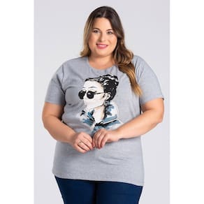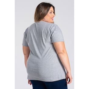 T-shirt feminina plus size elaborada em malha algodão. Possui Estampa na frente, leve, macia e com inúmeras possibildades de uso. Monte looks desde casuais ao chiques, com aquele nozinho na frente, uma bermuda jeans e seu tênis favorito por exemplo e arrase! Para ficar em casa bem confortável, curtir um passeio ou trabalhar você terá a peça ideal.