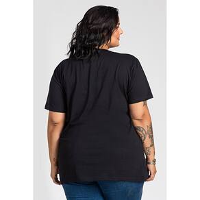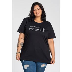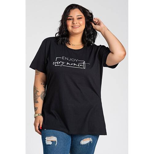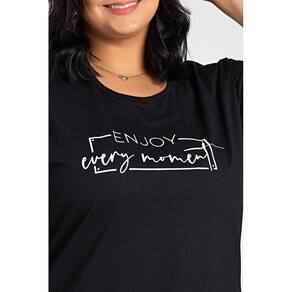 T-shirt Feminina Plus Size Malha Algodão Estampada "Enjoy" - Serena - Preto - G7