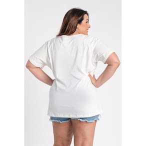 T-shirt Feminina Plus Size Malha Algodão Estampada "Happiness looks gorgeous on you" - Serena Rosa - G6 -