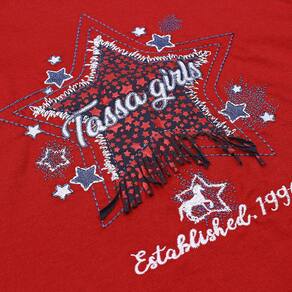 Camiseta infantil na qualidade Tassa, fabricada em tecido 100% Algodão na cor Vermelho, possui mangas curtas perfeita para os dias de calor, gola tradicional e estampa na parte frontal. Uma peça perfeita para sua pequena, sendo bastante versátil!