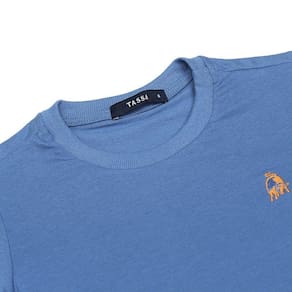 Camiseta infantil na qualidade Tassa, fabricada em tecido 100% Algodão na cor Azul, possui mangas curtas perfeita para os dias de calor, gola tradicional e pequeno bordado no peito. Uma peça perfeita para seu pequeno, sendo bastante versátil!