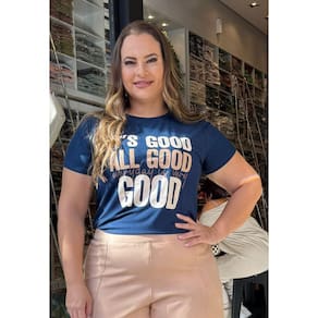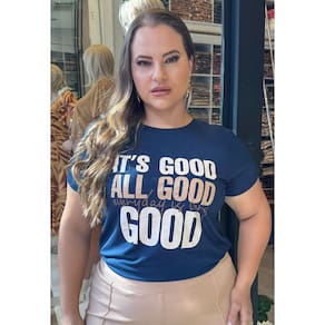 Renove seu visual com uma peça cheia de personalidade! A T-shirt Plus Size Estampada “It’s Good” é perfeita para quem busca conforto, versatilidade e estilo no dia a dia. Com modelagem tradicional e ajuste confortável ao corpo, essa blusa é confeccionada em malha macia e elástica, composta por 96% Poliéster e 4% Elastano, que garante caimento impecável. O grande destaque da peça é a estampa localizada frontal com mensagem positiva, que traz autenticidade ao look. A gola redonda e as mangas curtas completam o design moderno e prático. Ideal para composições casuais e urbanas, combina perfeitamente com jeans, calças de alfaiataria ou shorts.