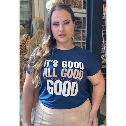 Estampa frontal: "IT’S GOOD ALL GOOD everyday is very GOOD"