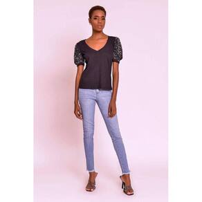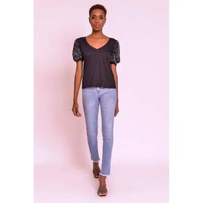 T-shirts Mangas Princesa, possui decote em V, detalhes em pedras e mangas curtas estilo pricesa. Muito além do básico, hoje em dia as T-shirts são indispensáveis para qualquer mulher moderna. Apesar de ser uma peça inicialmente descontraída, ela pode ser usada para transformar seu visual. Do street style para a vida, a camiseta é, sem dúvidas, o modelo de blusa mais prático e versátil que existe. Observação: a cor das peças nas fotos pode variar ligeiramente de acordo com o seu monitor ou telefone e por serem tiradas em estúdio ou com luz natural. Código do produto: 51764 Marca: Khalli Marca: Khalli