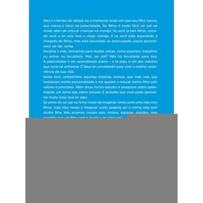 Não é o tempo do relógio ou o momento exato em que seu ?lho nasceu que marca o início da paternidade. Ter ?lhos é muito fácil, ser pai vai muito além de colocar crianças no mundo. Se você já tem ?lhos, convido você a ler este livro e viajar comigo. E se você está esperando a chegada de ?lhos, mas está assustado ou preocupado, posso garantir: você vai dar conta. Durante a vida, treinamos para muitas coisas, como esportes, trabalhos ou entrar na faculdade. Mas, ser pai? Não há faculdade para isso. A paternidade é um aprendizado diário — e te digo, é um dos maiores que você vai enfrentar. É Deus te convidando para viver a melhor experiência da sua vida. Neste livro, compartilho algumas histórias minhas, que hoje vejo que moldaram minha personalidade e me ajudam a educar minha ?lha com valores e princípios. Além disso, incluo estudos e pesquisas sobre paternidade, um tema que adoro estudar. E acredito que você pode aproveitar muita coisa que ler aqui. Se antes de ser pai eu tinha medo de imaginar como seria uma vida com ?lhos, hoje meu medo é imaginar como poderia ser a minha vida sem minha ?lha. Nós amamos nossos pais, irmãos, esposas, maridos, mas acredito que um ?lho vem e mostra um amor mil vezes maior. Muitos homens negligenciam e não vivem essa experiência mágica de criar uma pessoa que copia seus gestos, manias e aprende com você. Eu escolhi fazer parte do time que é presente, que participa, que dá e recebe amor, que erra. Pai perfeito não existe, e não há uma única fórmula para criar ?lhos. Então vem comigo nesta leitura para dividirmos experiências e aprendermos juntos.