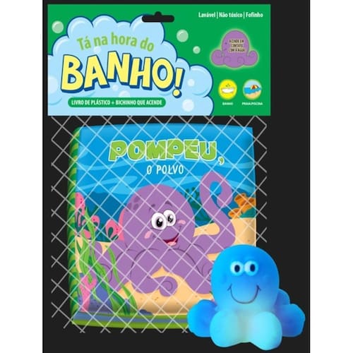 Apresentamos a coleção "Tá na Hora do Banho", favorita dos leitores da Editora Vale das Letras! Os livros de banho trazem lindas ilustrações e textos que facilitam o entendimento dos bebês. Alem de um bichinho que os pequenos vão amar. Enquanto ouvem a mamãe narrar as histórias rimadas, os bebês ainda brincam com o bichinho que acende em contato com a água! Este livro traz a historia de Pompeu, o Polvo. Inclui: 01 bichinho que acende em contato com a água.