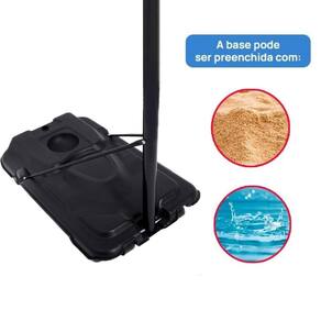 Chegou o momento certo para trazer o basquete para sua casa ou para diversão com os amigos. A base poderá também ser preenchida com água ou areia para garantir a estabilidade do equipamento.
