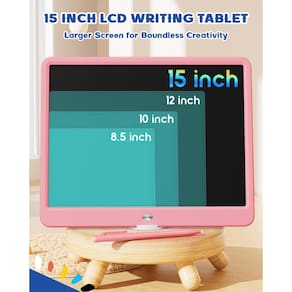 Bravokids Tablet LCD de 15 polegadas para crianças de 3 anos - Bloco de desenho eletrônico e quadro de rabiscos como presentes educativos de aniversário para meninas e meninos (rosa) - Tela colorida de proteção ocular: tela LCD colorida de 15 polegadas, fácil de visualizar e graffiti, imaginação da criança livre. Este tablet de desenho infantil sem radiação, sem brilho, seguro e confortável, até mesmo as crianças usam por um longo tempo. Brinquedos educativos de aprendizagem, presentes de aniversário para meninas de 3 anos. - Proteja o meio ambiente: mais de 100.000 vezes reescrevendo suavemente, economize milhares de papel e tinta com apenas uma prancheta, reduza o corte de árvores. Proteja nosso meio ambiente a partir de agora! - Fácil de usar: o quadro de desenho para tablet cria linhas como escrita e desenho no papel, a espessura diferente com base na força que você empurra com caneta, unhas ou qualquer coisa dura. Esvazie o conteúdo da tela em um segundo pressionando o botão de orelha, economize tempo e uso conveniente. Clique na tecla de bloqueio do quadro de rabiscos para salvar o conteúdo. - Portátil e durável: os tabletes de desenho para crianças são feitos de plástico durável, além de design de canto redondo, anti-queda e anti-choque, não precisa se preocupar com as crianças deixá-lo cair. O tablet de desenho pesa apenas 150 gramas, fácil de transportar, colocar em mochilas escolares, bolsas, bolsas de viagem. - Mantenha as crianças barulhentas e afinadas: você está enfrentando a confusão de como silenciar uma criança barulhenta? O tablet de escrita LCD permite que as crianças mergulhem silenciosamente no mundo do arco-íris. O quadro de rabiscos também pode ser utilizado em vários lugares: avião, carro, restaurante, sofá, etc. Os itens essenciais de viagem perfeitos para crianças!! !