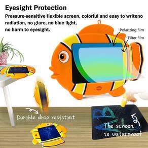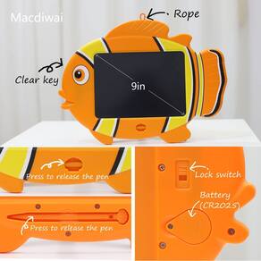 O quadro de pintura LCD colorido para crianças de peixe-palhaço pode desenhar o mundo grande do mundo pequeno e pode desenhar, escrever e aprender problemas repetidamente. A prancheta foi projetada para ser portátil, econômica e ecológica, e tem uma variedade de padrões e cores para você escolher. A prancheta foi projetada com uma fivela de corda suspensa. O corpo da parede das obras infantis tem um bom efeito decorativo e aumenta o interesse das crianças em aprender. Além disso, há uma caneta extra para duas pessoas desenharem e escreverem juntas.