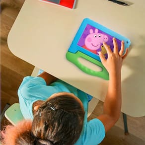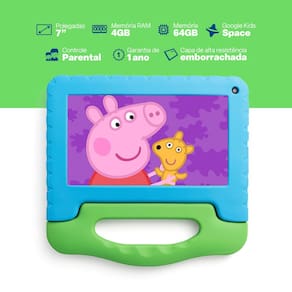 O Tablet Infantil Peppa Pig vem com uma case emborrachada e com alça que protege o dispositivo e garante mais conforto e segurança.