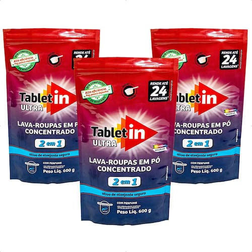 Kit Tabletin Ultra Lava-Roupas Em Pó Concentrado-600g (3 Unidades de 600g cada).