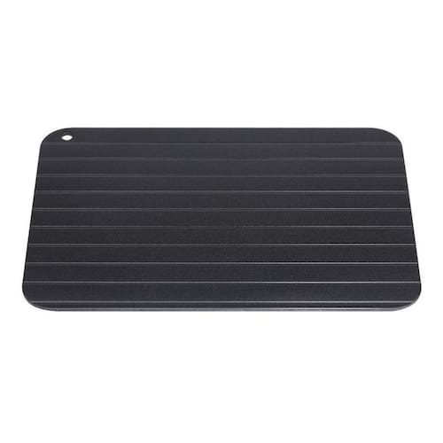 Tabua Bandeja De Descongelar Alimentos Mágica Descongelamento Defrost Rápido Produto capaz de descongelar alimentos congelados em poucos minutos de 20 a 60 minutos dependendo do tamanho/espessura sem utilização de nenhum produto químico ou eletricidade. Ao invés de fornos de microondas que cozinham parcialmente a comida durante processo de descongelamento, a bandeja descongela os alimentos com segurança e rapidez. A tábua permanece fria durante o uso, não é utilizado aquecimento através de eletricidade ou água quente. Basta colocar o alimento à ser descongelado sob a tábua e mantê-los em temperatura ambiente. O descongelamento ocorre até 3 vezes mais rápido do que se o alimento fosse mantido sob outra superfície. Características do Produto: - Material: Alumínio - Dimensões: 29,5cm x 21cm x 0,05cm - Não pode ser levado ao forno/Microondas - Fácil de limpar e guardar - Cor: Preto Item incluso: - 1 Tábua de descongelar alimentos Imagem Meramente ilustrativa.