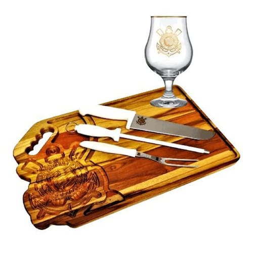 Tábua churrasco corinthians + kit churrasco + taça para cerveja presente oficial