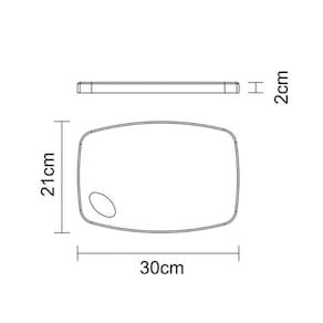 Dimensões (Comp. X Larg. X Alt.): 30 x 21 x 2 cm.