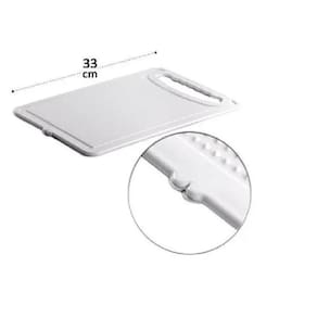 Tábua corte carne legumes plástico reforçado resistente ----loja oficial do click compras na internet---- Somos um dos melhores vendedores do site, nossa missão é atender com amor e carinho nossos clientes, oferecendo sempre o melhor atendimento e produtos de excelência. São milhares de produtos entregues e clientes satisfeitos. ----loja oficial do click compras na internet---- O kit compõe todas as peças da foto principal Produto em O modelo da tábua é prático e multiuso, ideal para cortar carne, verduras, legumes e frutas, sendo uma peça essencial para a sua cozinha. fabricada em polietileno, um material leve e resistente, esta tábua de corte evita a formação de mofo, seca rapidamente e é fácil de lavar. Além disso, possui uma pequena cavidade lateral para impedir o vazamento de líquidos, garantindo uma maior higiene e limpeza durante o uso. A tábua de corte tem uma longa vida útil e vem na cor branca lisa, combinando com qualquer decoração de cozinha. Especificações: - material: polietileno; - cor: branca; - tamanho: 33cm de comprimento x 22cm de largura. Marca: Não Informado
