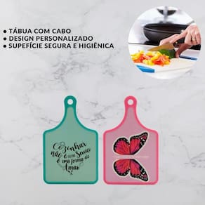 Leve mais praticidade e cor para sua cozinha Adquira agora a Tábua de Corte com Cabo da AD e desfrute de um preparo de alimentos mais fácil, seguro e cheio de estilo Tábua de Corte com Cabo 30x19cm Praticidade na Cozinha - AD