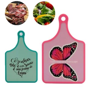 Tábua de Corte com Cabo 30x19cm Praticidade na Cozinha - AD COR: ROSA Nome do Produto: Tábua de Corte com Cabo 30x19cm Praticidade na Cozinha - AD