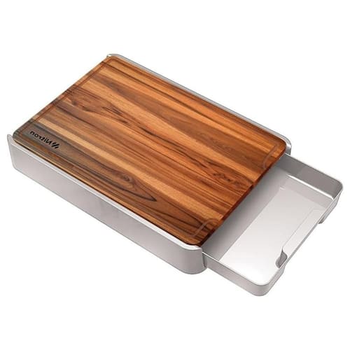 Tabua de corte com suporte e gaveta branca - NITRON A tábua de corte em madeira teca é um item essencial para os amantes da culinária. Além de sua resistência e durabilidade, a madeira teca possui propriedades naturais antibacterianas, garantindo maior higiene durante a preparação dos alimentos.
