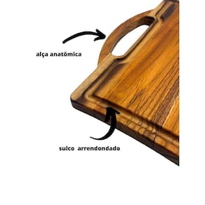 Uma tábua com design moderno e de excelente qualidade, trazendo um charme a mais na hora de cortar e servir. Alça em formato anatômico, facilitando o manuseio e armazenagem. Possui sulco arredondado para facilitar ainda mais a limpeza e higienização. Confeccionada em madeira teca, uma madeira de reflorestamento de alta resistência, fácil secagem, peça ecologicamente correta Possui proteção antibacteriana, que inibe a proliferação de bactérias e microorganismos.