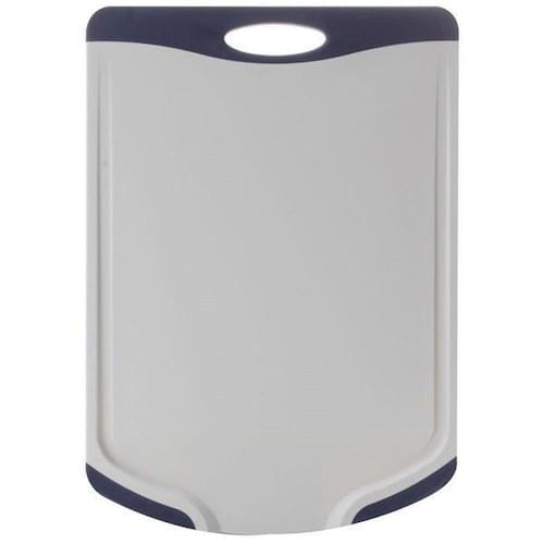 Descrição: Com design único inspirado na curva do punho, essa linha de tábuas plásticas está disponível em uma variedade de cores. Ação antimicrobiana KLEON protege ao longo de toda a superficie de corte e punho; Alça com material suave; Dispositivo anti-deslizamento na bancada; Uso reversível em ambos os lados; Superfícies não porosas e não absorventes; Seguro para uso em lavadouras de louça; Não deixam as facas cegas; Coletor de suco nas bordas.Ficha técnica: Material: PolipropilenoDimensões: 36,4x25,1cmCor: Azul/BrancaMarca: Neoflam