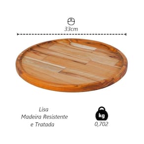 01 Tábua de Frios Petisqueira Redonda Lisa Madeira 33cm.
