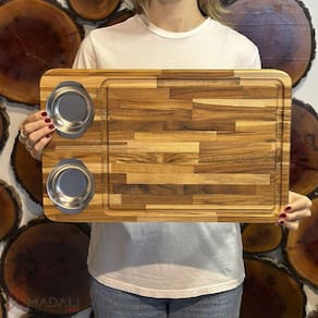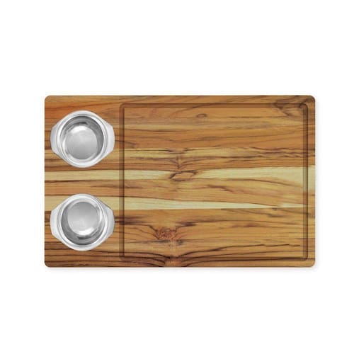 A madeira teca é conhecida há mais de 500 anos, no passado era utilizada na construção naval devido a sua resistência contra água e ações do tempo. Ela se destaca por sua rigidez e coloração variada, motivos estes que elevam seu preço no mercado e a tornam uma madeira nobre em diversos países do mundo. Hoje em dia é utilizada na produção de artigos para decoração, churrasco, entre outros nichos. Estes são alguns dos motivos que fazem a ; Tábua de Madeira Teca para Churrasco com 2 Potes Inox - Stolf um produto especial e indispensável na sua casa.