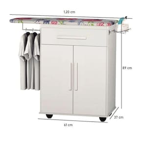 Tábua de Passar Roupa 02 Portas e 01 Gaveta, porta com dobradiças metálicas de ótima resistência, prateleiras internas para manter suas roupas organizadas, produto de ótima qualidade que oferece mais praticidade.