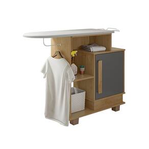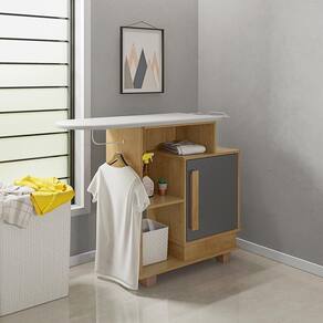 é uma tábua de passar roupas que conta com um pequeno armário em sua parte inferior conta comTecido Antitérmico ePorta Ferro em alumínio.