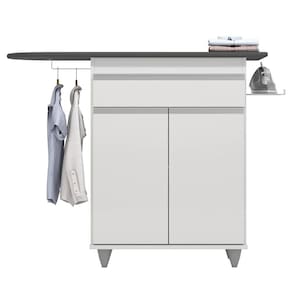 Se organização e funcionalidade estão nos seus parâmetros de busca em encontrar um tábua de passar com balcão que melhor se adapte ao ambiente, então a Lumil Móveis fez a escolha certeira em desenvolver o modelo Larissa! Em termos de estrutura, ele conta com durabilidade e resistência graças a estrutura em MDP, pés em PVC e pintura em Melamina BP. E a funcionalidade é que além da tábua de passar, este complemento também possui cabideiro para pendurar roupas, suporte para deixar o ferro sempre de prontidão, 1 gaveta de corrediças metálicas e puxadores cromados, 2 portas com o mesmo tipo de puxador e 1 prateleira interna! Ah, e graças ao design versátil pode fazer parte da área de serviço, quarto ou onde preferir!