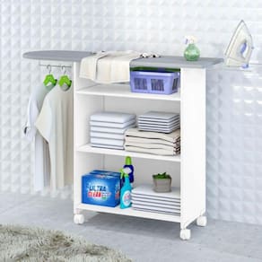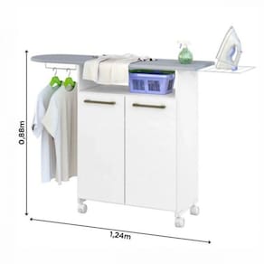 MDPA Tábua de Passar Roupa com Organizador e 2 Portas Primor da Zanzini Móveis é um produto prático e funcional. O tampo da tábua tem um tecido Especial e pode ser montado para ambos os lados: direito/esquerdo. Também possui um armário organizador com duas portas de abrir, além de rodízios, sendo dois deles com travas, permitindo mobilidade ao móvel.