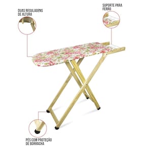 Tábua de Passar Roupa Dobrável de Madeira Layla 2 Níveis Estampada G02 - D`Rossi