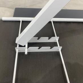 Nossa tábua de passar roupa combina funcionalidade e qualidade excepcionais. Ela é projetada com uma superfície ampla e resistente, oferecendo um suporte estável e seguro para o processo de passar roupas. Com uma estrutura robusta e durável, você pode contar com nossa tábua para fornecer um apoio firme e estável enquanto você trabalha.