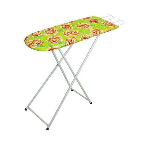 Tábua para passar roupa com superfície acolchoada de espuma com espessura de 7mm, revestimento em tecido decorado 100% algodão. Suporte para ferro de passar 3 regulagens de altura: - 1º altura: 790mm - 2º altura: 820mm - 3º altura: 860 mm