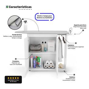 Transforme sua rotina de passar roupas com praticidade e eficiência! A Tábua de Passar Top foi projetada para economizar seu tempo e energia, graças ao seu tecido térmico metalizado que retém o calor, tornando o processo mais rápido e eficiente. Com uma base ampla, é ideal para peças de todos os tamanhos, e o tampo pode ser montado para destros e canhotos, oferecendo versatilidade para qualquer ambiente.