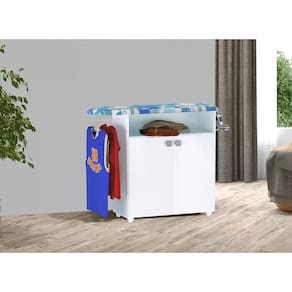 Tábua de Passar Roupas Bianca, é ideal para quem busca qualidade e sofisticação. Estrutura em MDP de 12 e 15 mm, acabamento em pintura UV (Fosco/Brilho). Composta por tampo estofado com espuma e revestido com tecido (cor do tecido: , podendo variar de acordo com o lote de fabricação), 02 portas com dobradiças metálicas, prateleira interna resistente, suporte aramado para colocar o ferro de passar, cabideiro que facilita a acomodação das roupas já passadas, nicho, puxadores em PVC, e acompanham pés em PVC. Perfeita para sua área de , proporcionando praticidade no dia a dia dos afazeres domésticos. Este móvel chegará na sua casa separado em 01 volume.