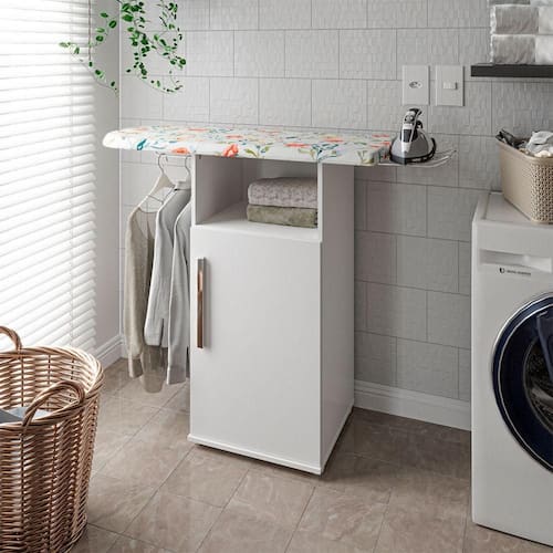 AS IMAGENS SÃO MERAMENTE ILUSTRATIVAS E PODEM SOFRER VARIAÇÕES DE COR E PEQUENOS DETALHES DE ACORDO COM O SEU MONITOR, ILUMINAÇÃO DO AMBIENTE E ATÉ MESMO A SUA PERCEPÇÃO Ãbua de Passar Roupas Maria Flor com 1 Porta - Branco
