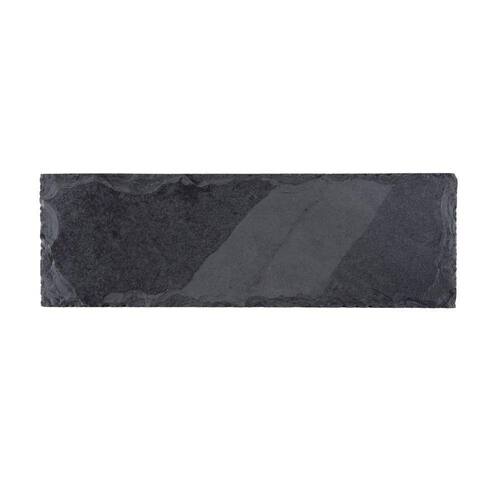 Feita de pedra natural ardosia, essa tabua possui variações nos tons e texturas, tornando cada peça única. Seu tamanho é de 30 x 15 cm, com uma espessura variando de 0,7 a 0,9 cm.