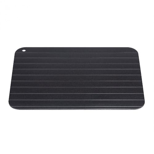 Tabua Mágica de descongelar rápido carne e alimentos Tamanho: 35,5 cm x 20,5 cm Descongelar alimentos congelados em poucos minutos; Descongelar os peitos de frango, bife, costeletas de porco, costeletas de cordeiro e mais dentro de 3060 minutos dependendo da espessura; Degelo menores de alimentos como hambúrgueres, salsichas, camarões e bacon ainda mais rápido; Absolutamente nenhum produto químico ou eletricidade é usada. Ao invés de fornos de microondas que cozinha parcialmente a comida durante o processo de descongelamento, a bandeja descongela a carne com segurança e rapidez; Bandeja de degelo permanece frio ao toque mágico ao longo de seu uso, sem pré-aquecimento e sem o uso de água quente; Basta colocar na bandeja e ele vai descongelar alimentos congelados até 9 vezes mais rápido do que a temperatura ambiente; 100% brand new e de alta qualidade; Não há necessidade de saber como descongelar o alimento em questão de minutos por mais tempo; Descongelar mercadorias congeladas naturalmente Esta super bandeja de degelo é feita de alta qualidade material condutor térmico para acelerar o processo de descongelamento de forma dramática. A bandeja não precisa de eletricidade, ou baterias. Ficha técnica - cor: preto