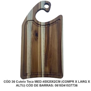 Tábua para churrasco cutelo multiuso 45x25x2cm madeira Cód 36 cutelo teca med:45x25x2cm compr x larg x altu cód de barras: 0618341537736