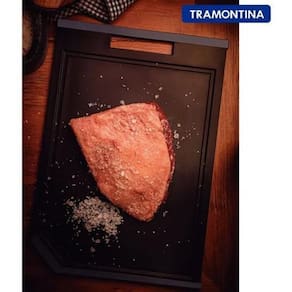 A tábua de corte Tramontina Churrasco Black em polipropileno preto é muito importante para servir um churrasco de sucesso. Produzida em polipropileno preto, ela pode ser utilizada nos dois lados de textura diferente: um com textura lisa, adequado de alimentos crus e o outro de textura rugosa, ideal para corte de alimentos cozidos ou assados. A tábua ainda possui bordas com acabamento emborrachado, que não a deixa deslizar, e proteção antimicrobiana que inibe a proliferação de fungos e bactérias em sua superfície. Ela suporta temperaturas de até 90 graus e pode ser lavada na máquina de lavar louças, levando muita praticidade ao seu dia. Com a Tramontina, o seu churrasco fica ainda melhor